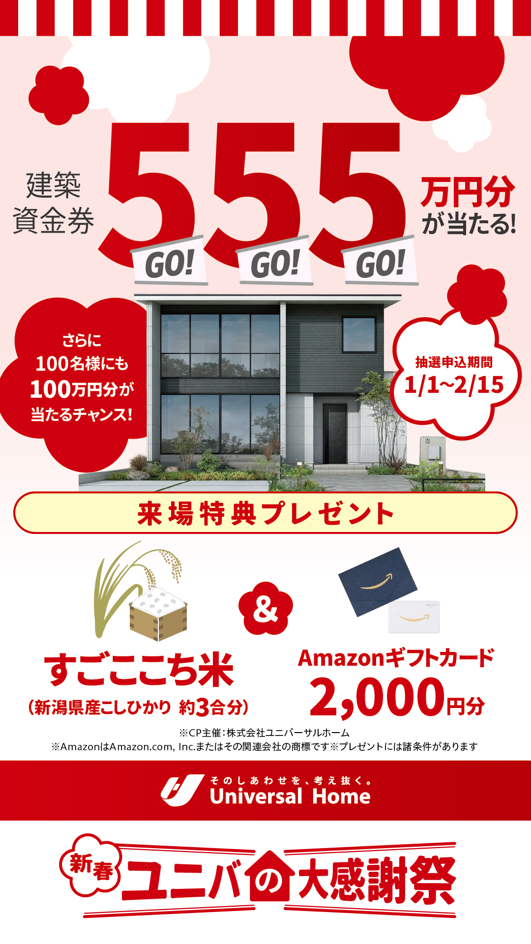 建築資金555万円が当たる!